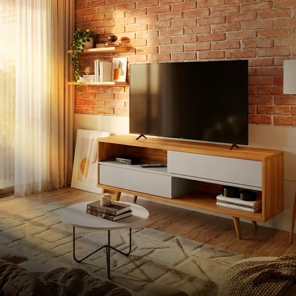 Rack e Painel p/ TV até 42” Hawai – Canela OffWhite – Borsari
