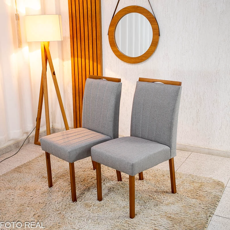 2 Cadeiras Isabela Linho Cinza 05 Madeira Maciça KM Decor – Entregue Montada
