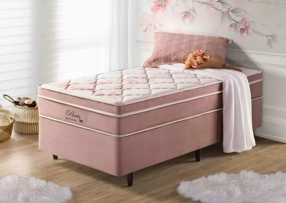 Box Rosa + Colchão Solteiro Eiffel Molas Superlastic 88x188x68 Anjos.
