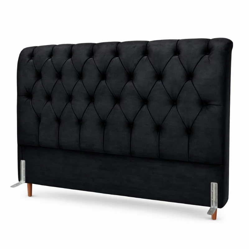 Cabeceira Casal Lavínia Veludo Preto Largura 1.40m