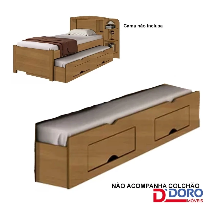 Cama Auxiliar Solteiro 2 Gavetas Cinamomo D Doro