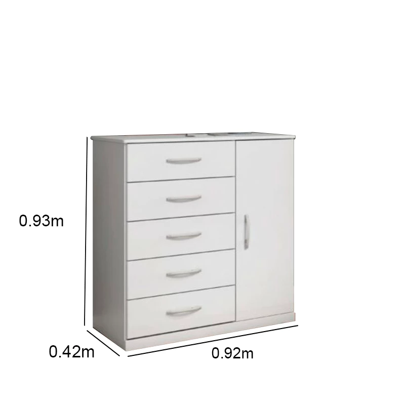 Cômoda Vane 012 Branco 5 Gavetas 1 Porta Larg. 0.92m – JL Móveis