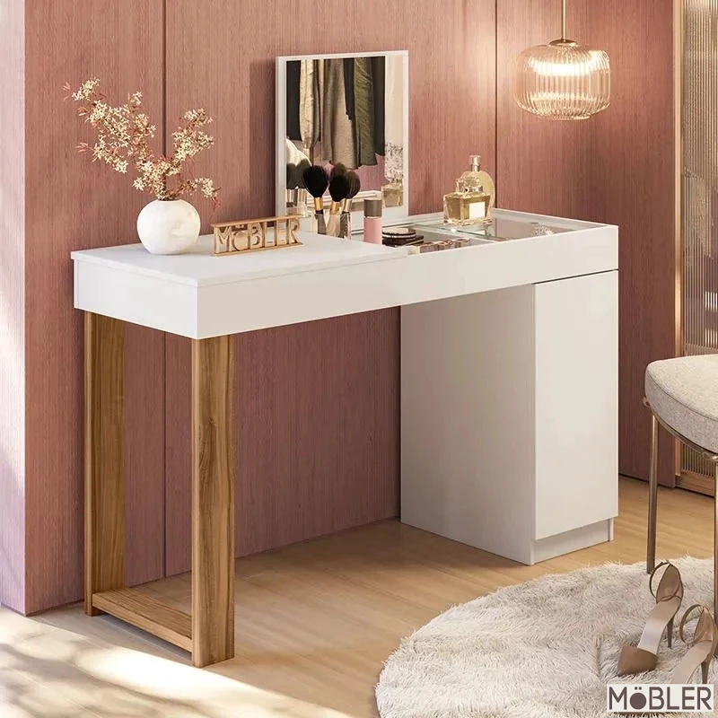 Escrivaninha e Penteadeira Love Branco/Cinamomo Mel Larg. 1.212m – Mobler