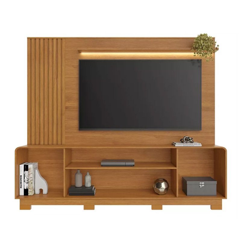 Home Apego Larg. 2.00m Cinamomo/Off C/ Luminária LED e Detalhe Ripado TV até 65″ – JCM