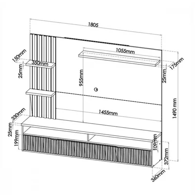 Painel Aurora Larg. 1.80m Mel/Off Detalhe Ripado para TV até 65″ – Viero