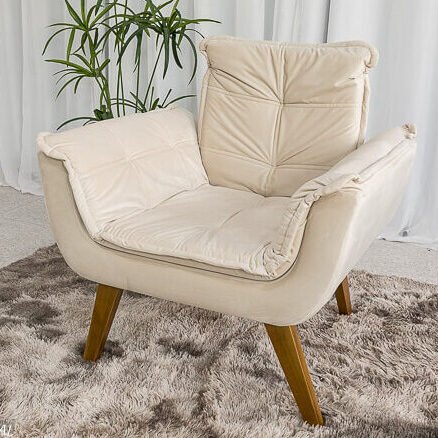 Poltrona Pérola Veludo Bege