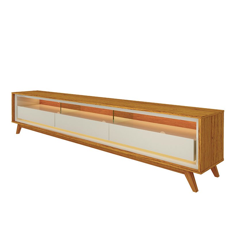 Rack Requinte Larg. 2.12m Naturale/off C/ Led 100% MDF para TV até 75″ – Gelius