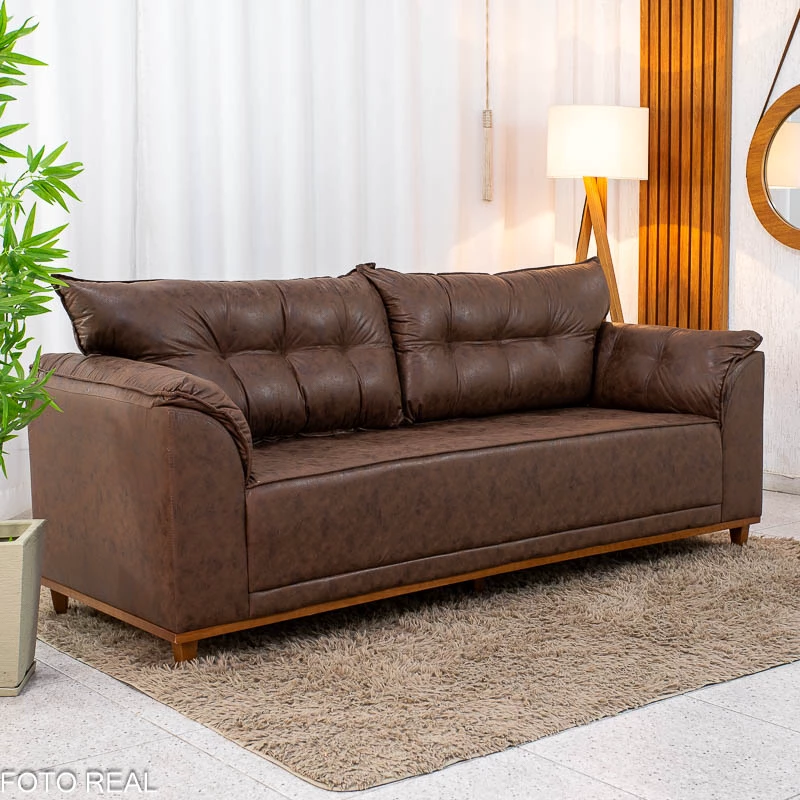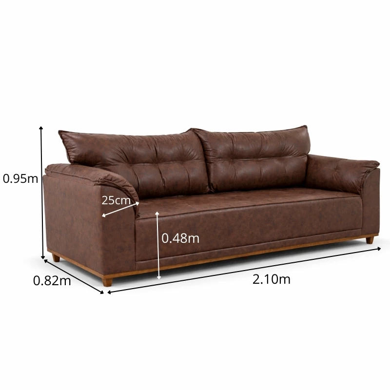 Sofá 3 Lug. Gramado Larg. 2.10m Korino Nobuck Marrom 3051