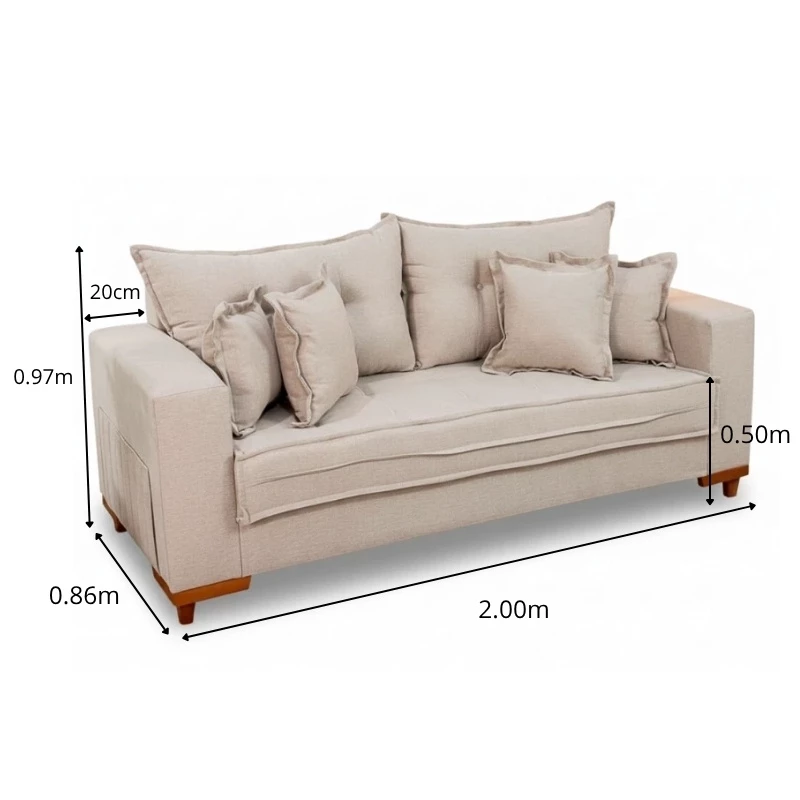 Sofá 3 Lug. Portugal 2.00m Linho Bege 24