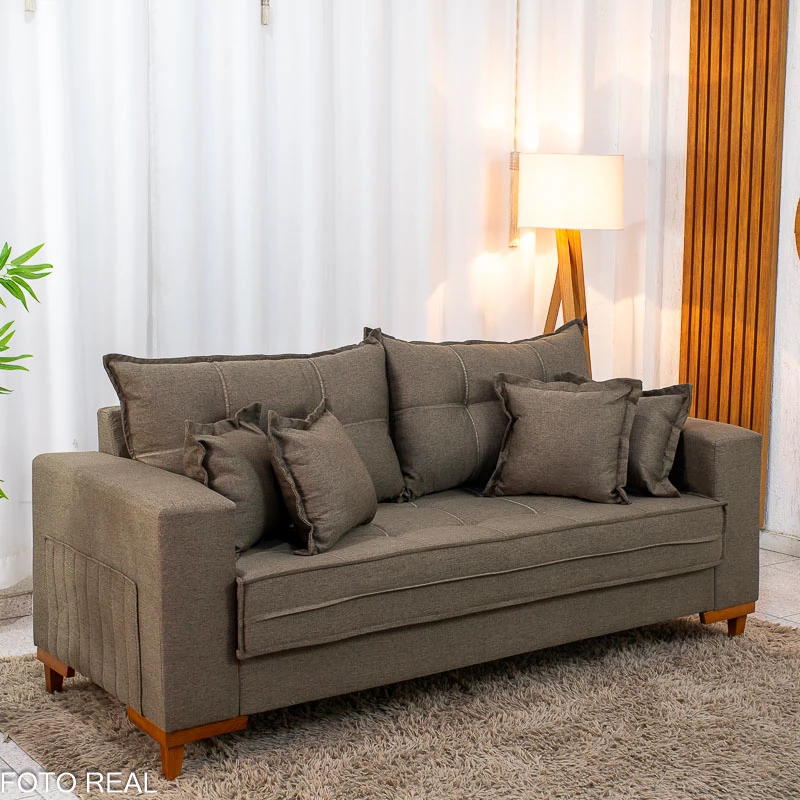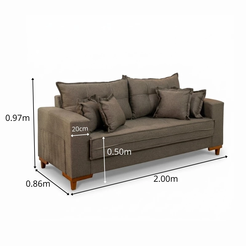 Sofá 3 Lug. Portugal 2.00m Linho Marrom 25
