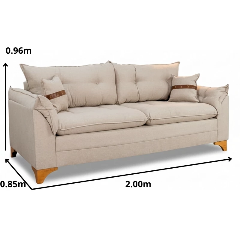 Sofá 3 Lugares Creta Linho Bege 24 Larg. 2.00m – Molas bonnel