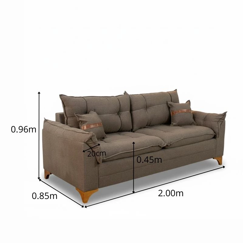 Sofá 3 Lugares Creta Linho Marrom 25 Larg. 2.00m – Molas bonnel