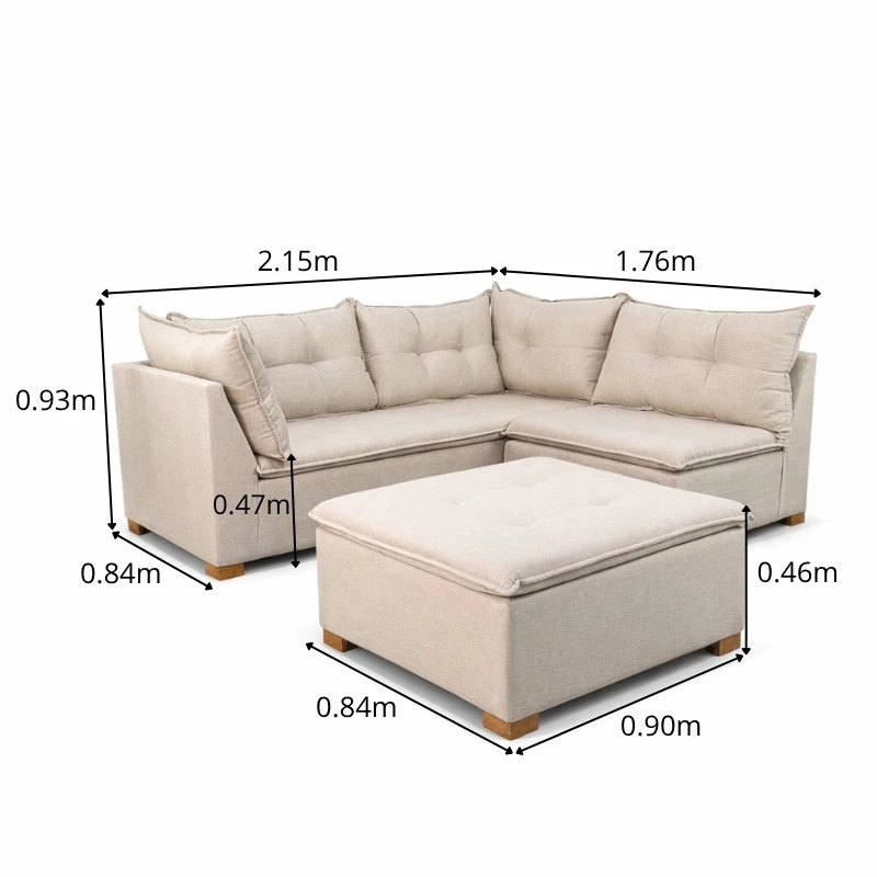 Sofá Canto com Puff Jaguar Linho Bege 2003