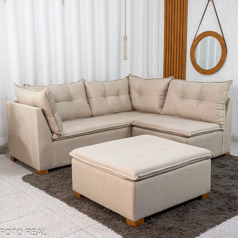 Sofá Canto com Puff Jaguar Linho Bege 2003