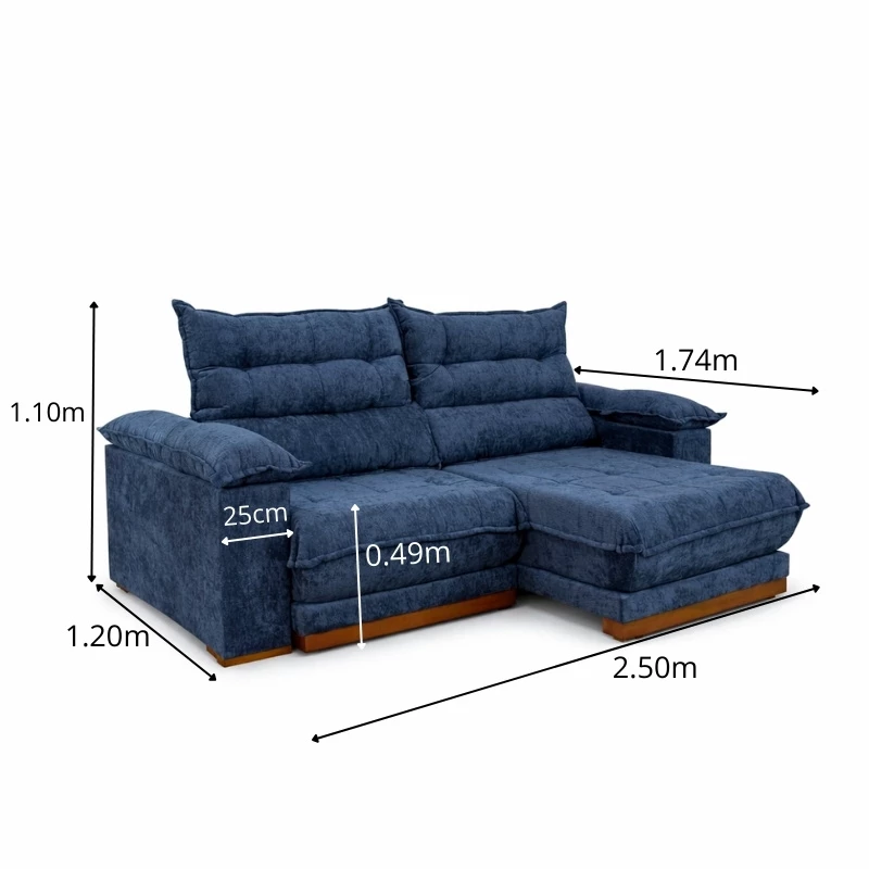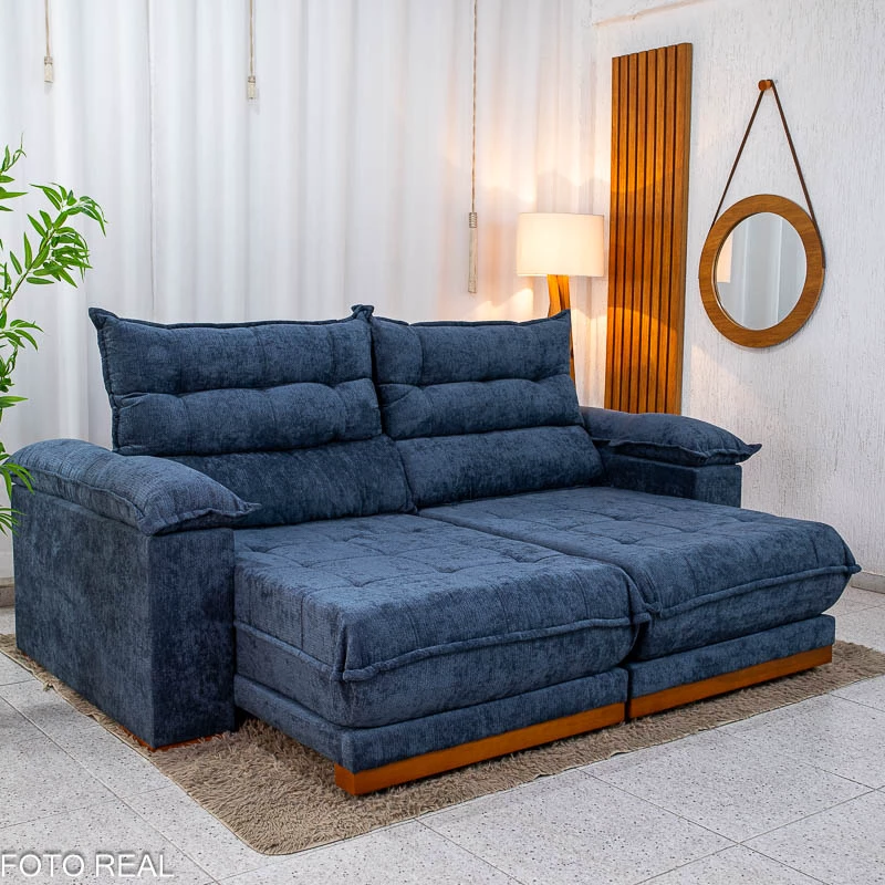 Sofá Retrátil Reclinável Itauna 2.50m Chenille Azul 575 – Molas Ensacadas